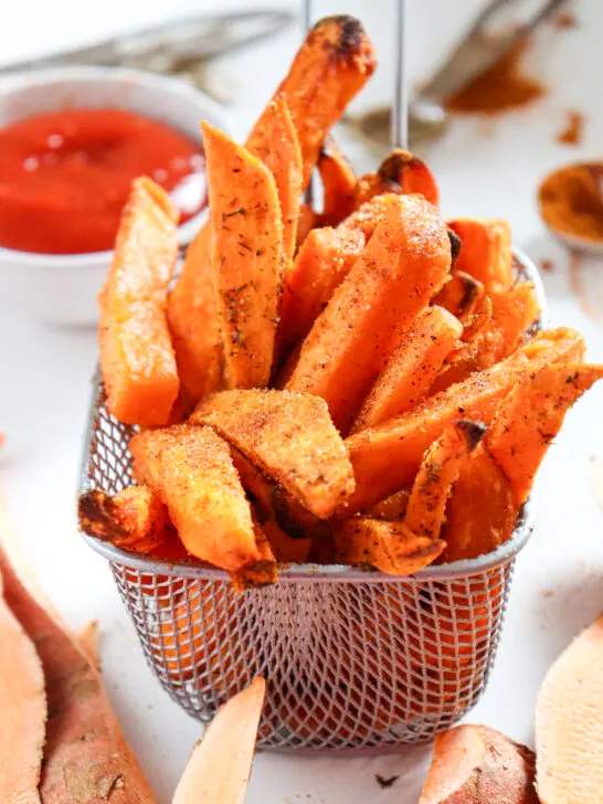 Compared to white potatoes, sweet potatoes are a nutrient powerhouse. Sweet Potatoes are full of fiber, beta-carotene (hello, vitamin A!), and antioxidants. And when you make them in the air fryer instead of deep frying, you cut way back on the oil while still getting that irresistible crisp.