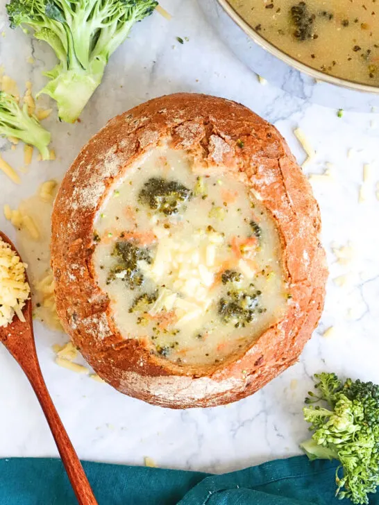 Enjoy the ultimate comfort food with this creamy Broccoli and Cheese Soup. This easy soup recipe is perfect as a cozy fall soup recipe or a hearty winter soup recipe that the whole family will love.